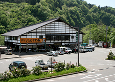 役場からほど近い道の駅です。新鮮な野菜や村の特産品などが並びます。食堂とトイレも併設しています。
