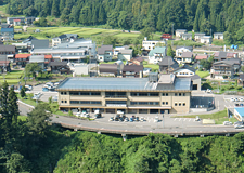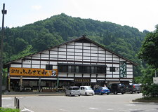 役場からほど近い道の駅です。新鮮な野菜やきのこ、村の特産品などが並びます。食堂では栄村産のそば粉にオヤマボクチ(山ごぼうの葉)と、ふのり(海草)をつなぎに使った手打ちざるそばがお勧めです。