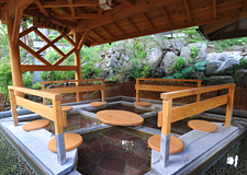 武田信玄ゆかりのお寺、横湯山(おうとうざん)温泉寺の境内にある、荒井川原源泉を使用した足湯。武田菱に因んで菱形に設えられた足湯の周りでは、歩行湯もお楽しみいただけます。利用可能時間:朝8時~夜10時まで。料金:無料。