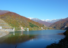 南魚沼市五十沢地区にあるロックフィル式の三国川ダムのダム湖。雄大な山並みを湖面に映し出すその景観は、北欧の雰囲気を漂わせた美しさ。周辺にはドライブコースや公園、展望台もあります。※平成23年7月の豪雨水害の関係でオートキャンプ場方面(市道)の一部通行止めとなっているため、一周が不可能となっております。